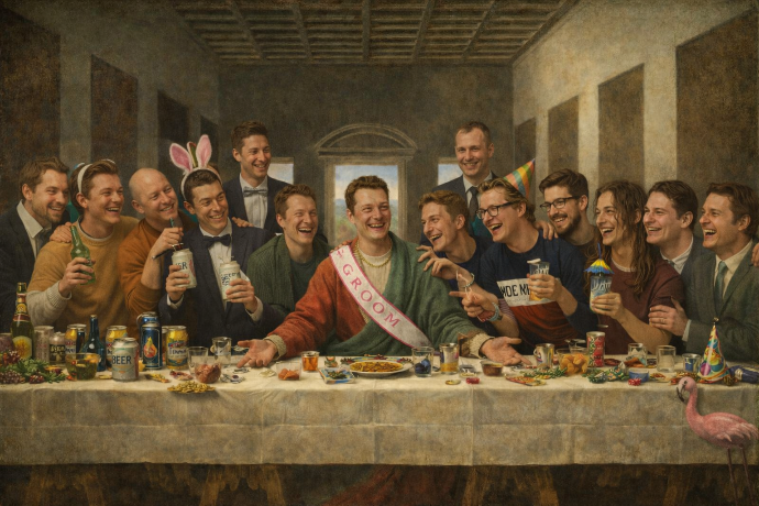 Een vrijgezellenfeest is anders. Eén hoofdrolspeler, elf vertrouwde vrienden, geen strak schema en totale vrijheid. De muziek komt van waar je ook bent, de drankjes verschijnen zonder uitleg en de beste momenten zijn net diegene die je nooit had gepland.